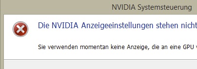 Die Nvidia Anzeigeeinstellungen stehen nicht zur Verfügung: Sie verwenden Momentan keine Anzeige, die an eine GPU von NVIDIA angeschlossen ist
